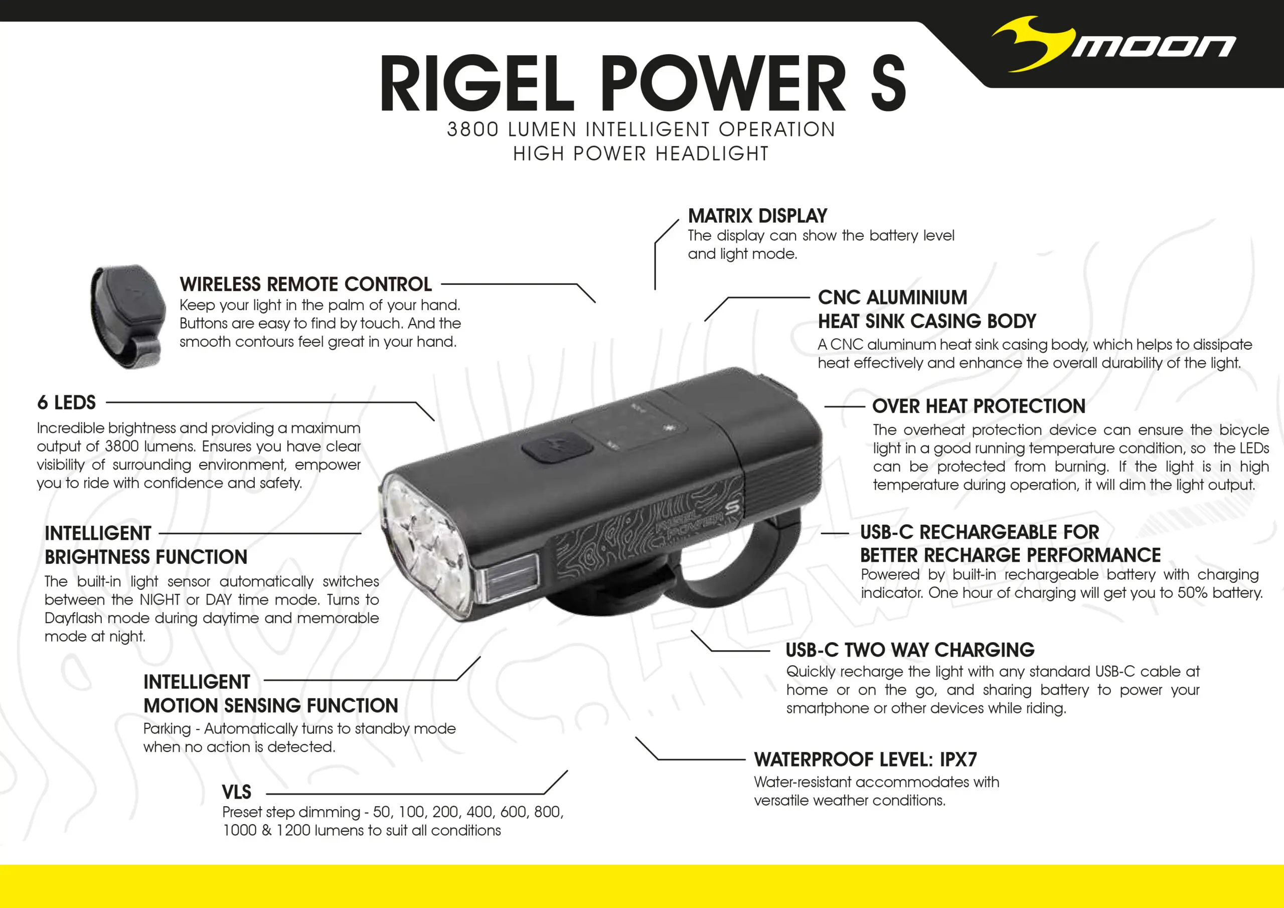 MOON RIGEL POWER-S 3800LM HEADLIGHT